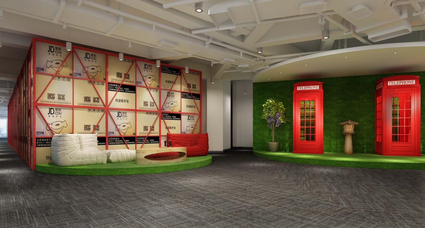 在这个现代风的办公空间中,除了追求高效、简洁的极速风格外,还融入了乐活理念。乐活族重视个性、质朴、随意、自然,追求健康、环保、时尚、有机、天然、绿色的生活方式。我们运用了京东红为主色调,同时融入了大自然的元素,如绿色的植物和天然的材质,让整个办公空间更加充满活力。